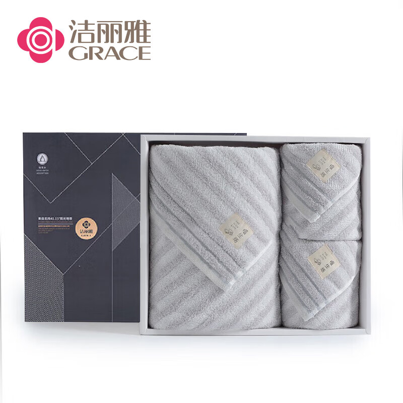 洁丽雅(Grace) 新疆棉抗菌浴巾套装礼盒 毛巾*2+浴巾*1