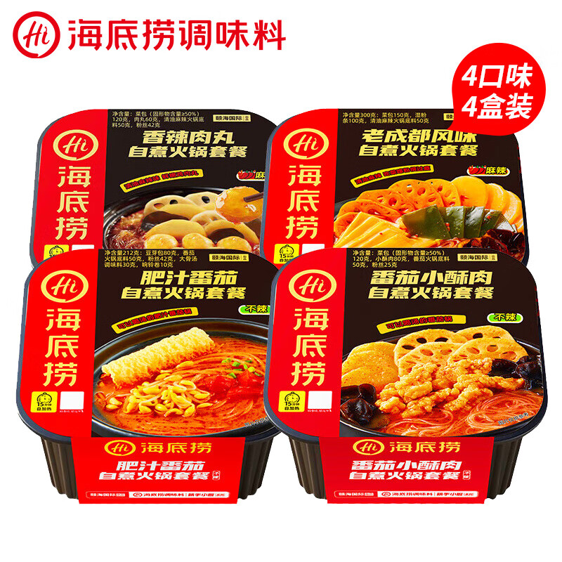 海底捞自热火锅方便速食4口味4盒早餐零食宵夜大分量1059g